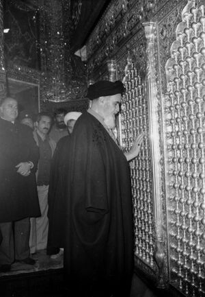 ایشان برخی دیدارهای خود با شخصیت‌ها را در ارتباط با انقلاب اسلامی در حرم قرار می‌داد.[۶۱] ایشان در آبان ۱۳۵۶ در یک سخنرانی در نجف نیز دربارهٔ اهانت رژیم پهلوی به حرم فاطمه معصومه(س) سخن گفت.[۶۲]