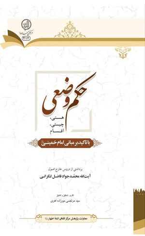 در این کتاب با توجه به دیدگاههای بدیع امامخمینی در مباحث مختلف اصولی و از جمله در بحث حکم وضعی، نظرات ایشان محور بحث قرار گرفته است. البته در کتاب دیدگاههای مهم دیگر اصولیان نیز به بحث گذاشته شده است. این کتاب تقریر دروس خارج اصول محمد فاضل لنکرانی در نیمه نخست سال تحصیلی ۱۳۹۲- ۱۳۹۳ش طی بیست و هفت جلسه است که توسط نگارنده به رشته تحریر در آمده است.[۲]