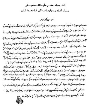 فاجعه لبنان و مصیبات وارده بر برادران ایمانی ما به حدی نیست که بتوان تحریر کرد. اکنون جنگی که دستهای مرموز دشمن انسانیت به نفع استعمار و اسرائیل بر پا نمود و لبنان را به صورت مخروبهای وحشتناک درآورد.