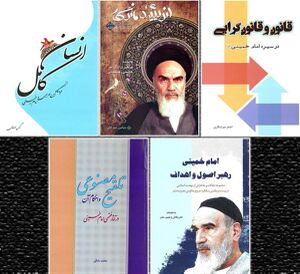 ۲. برخی از این کتابها، تحقیق، تشریح و ترجمه یکی از آثار امامخمینی را به عهده گرفتهاند مانند: شرحی بر وصیتنامه الهیسیاسی امامخمینی (آذری)، تحقیق و ترجمه رساله تقیه امامخمینی (فهرستی)، شرح و تبیین نظریه خطابات قانونیه امامخمینی (مؤمنی).